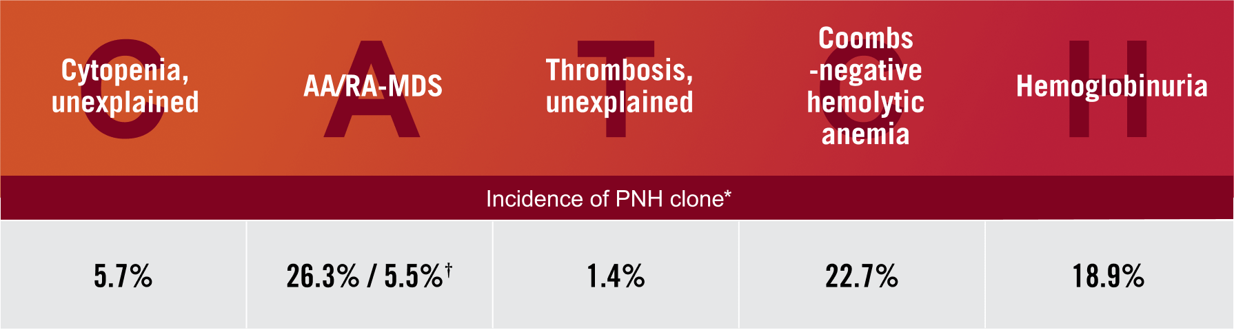 Rule PNH in or out using high-sensitivity flow cytometry and comprehensive clinical assessment.